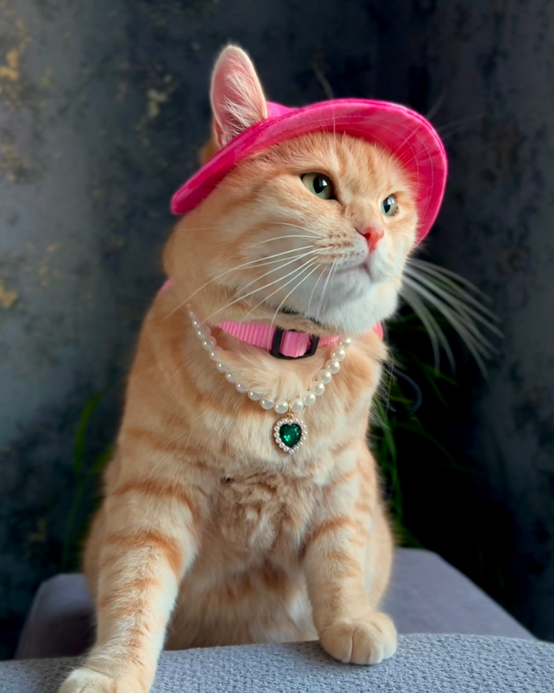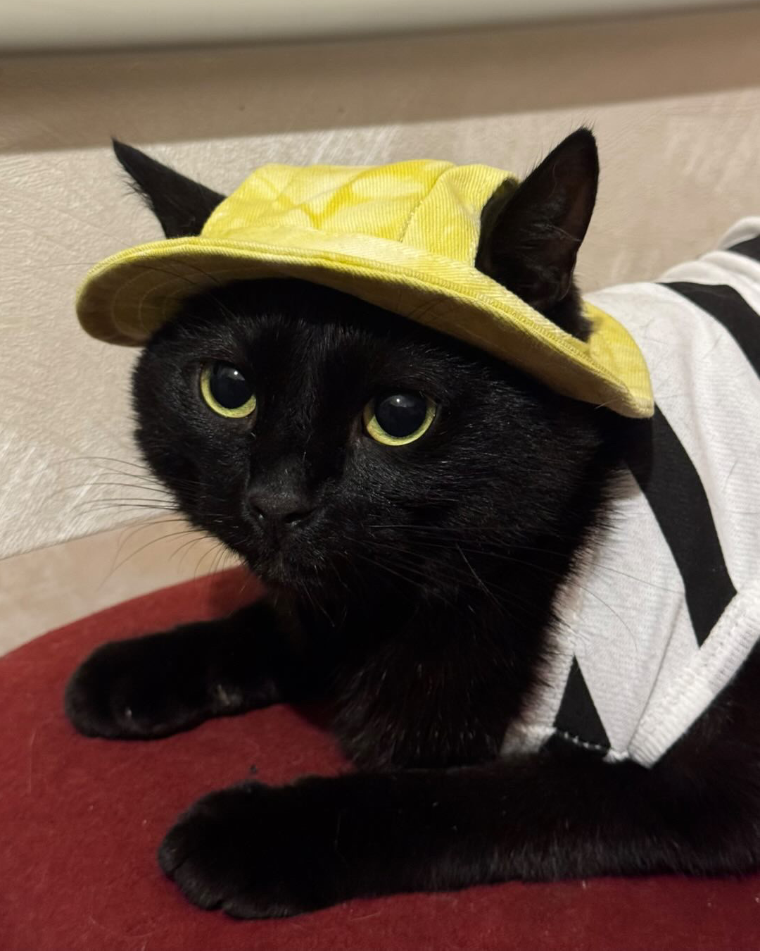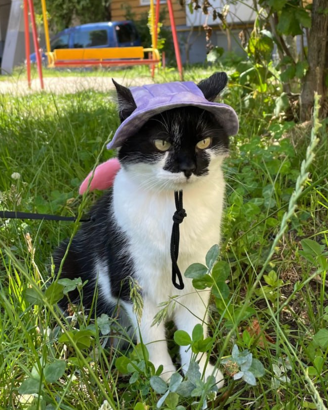 Панамка – універсального розміру, яка регулюється повзунком, тому підійде майже всім котикам, за виключенням великих порід, наприклад мейнкун